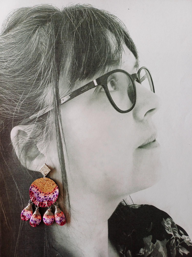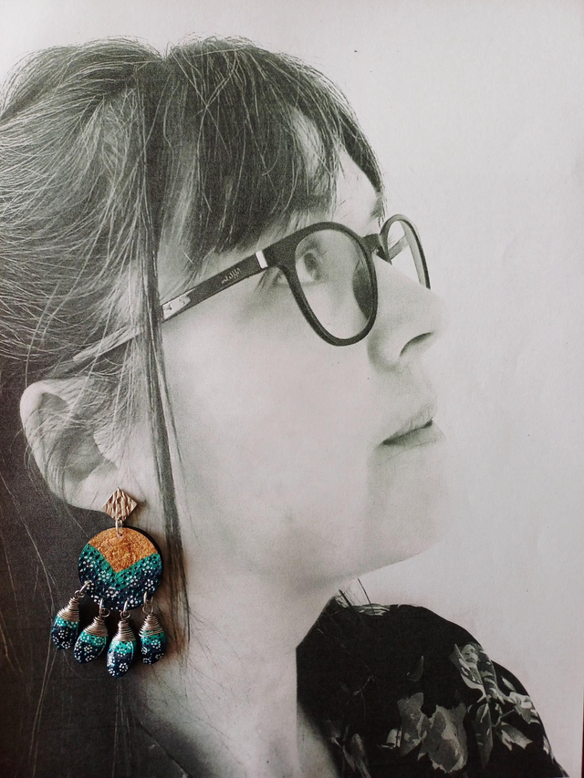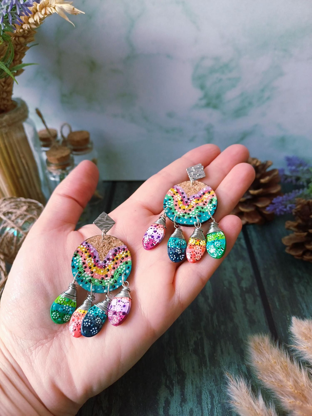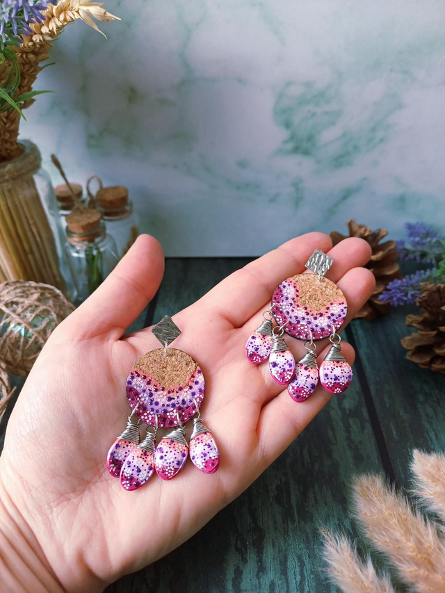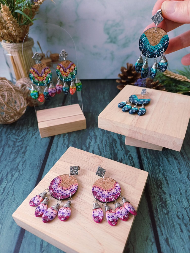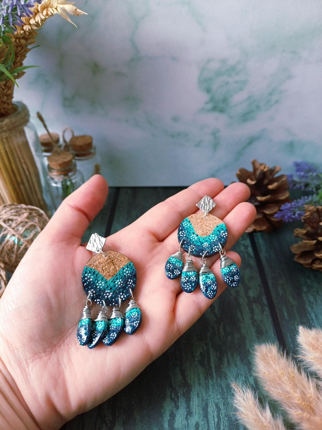 Boucles d'oreille réalisées à partir de bouchons de liège et graines de Potimarron.