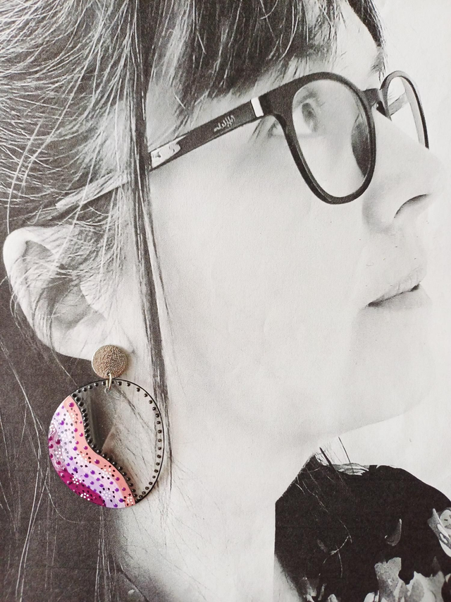 Boucles d'oreille réalisées à partir de verres de lunettes.