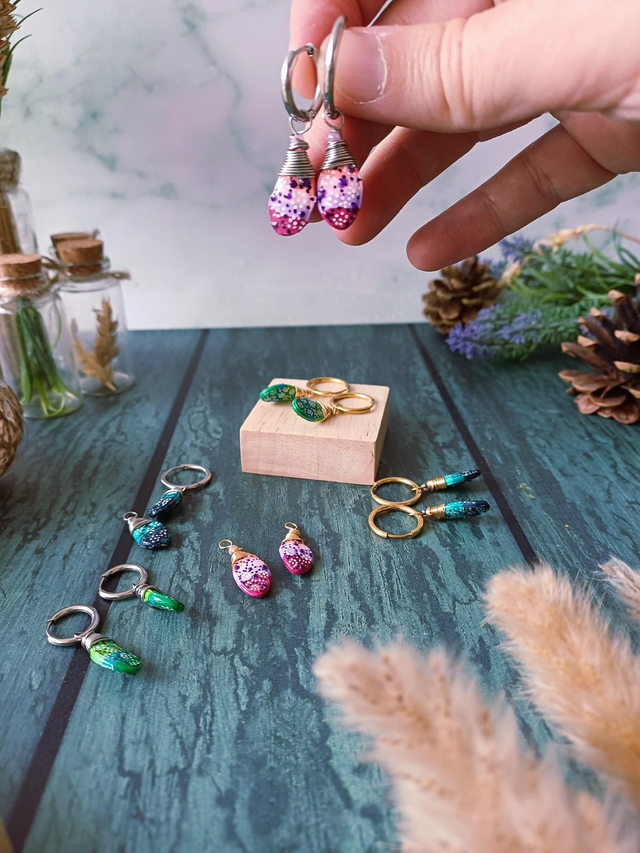 Boucles d'oreilles interchangeables, idéales pour continuer d'apporter toute la lumière et le pep's de l'été dans votre tenue.