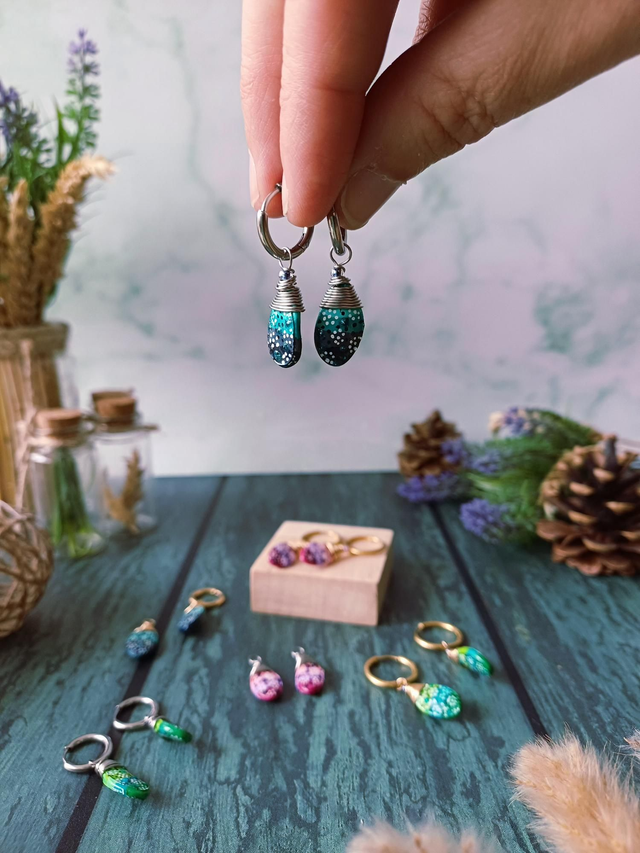 Les graines sont séchées dans mon atelier, puis peintes et vernis. Chaque modèle est unique et réalisé à la main. Il peut y avoir une légère variation sur la forme et les motifs.