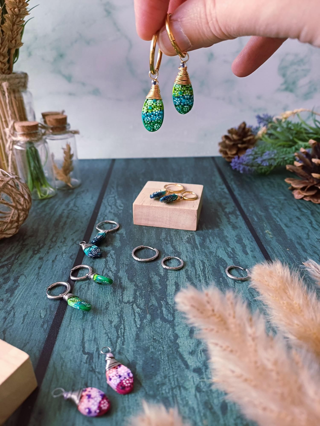 Les graines sont séchées dans mon atelier, puis peintes et vernis. Chaque modèle est unique et réalisé à la main. Il peut y avoir une légère variation sur la forme et les motifs.
