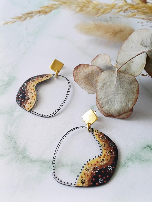 Avec une décoration réalisées à la main, ces boucles portent une histoire : une matière sauvée, transformée, réinventée.